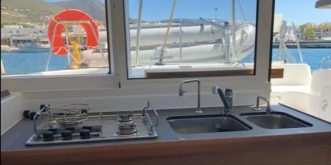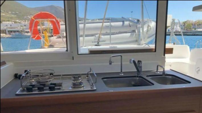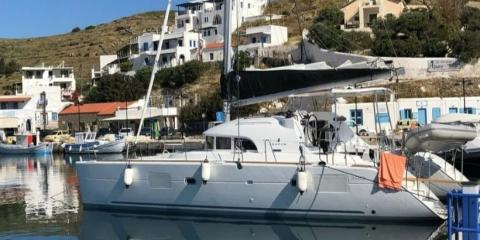 Welcome aboard the Lagoon 380 (2019) departing from Paros port.
