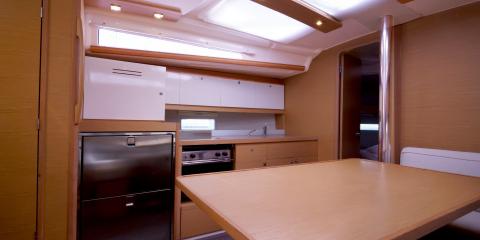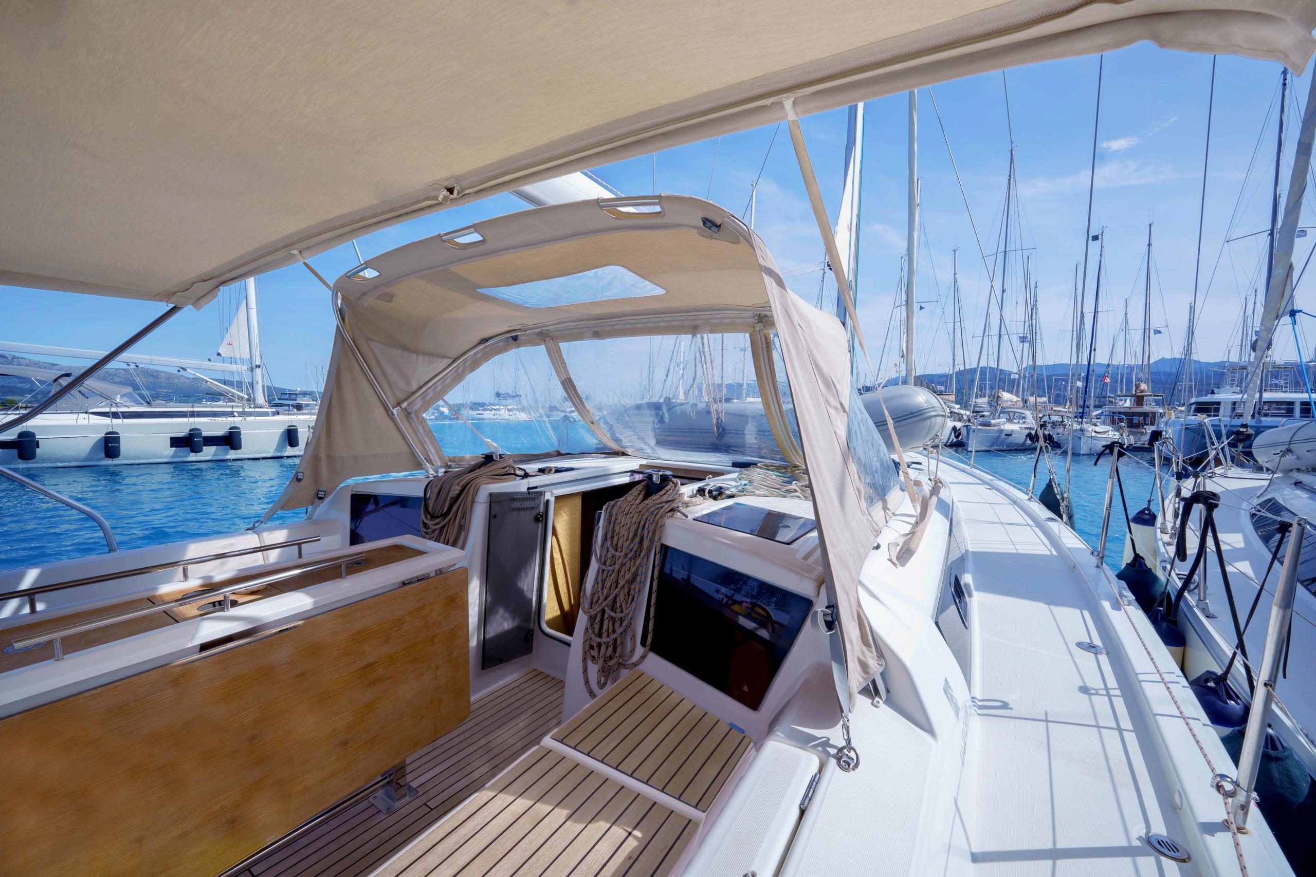 This Dufour Grand Large 390 is available for charter from Port of Lefkas. It features 3 cabins, perfect for your holidays.