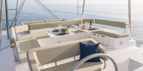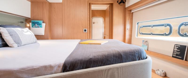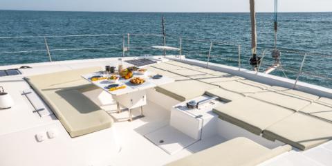 Ce Bali 5.4 est disponible à la location au départ de Port Tino Rossi. Il s'agit d'une version 6 cabines, idéal pour vos vacances.