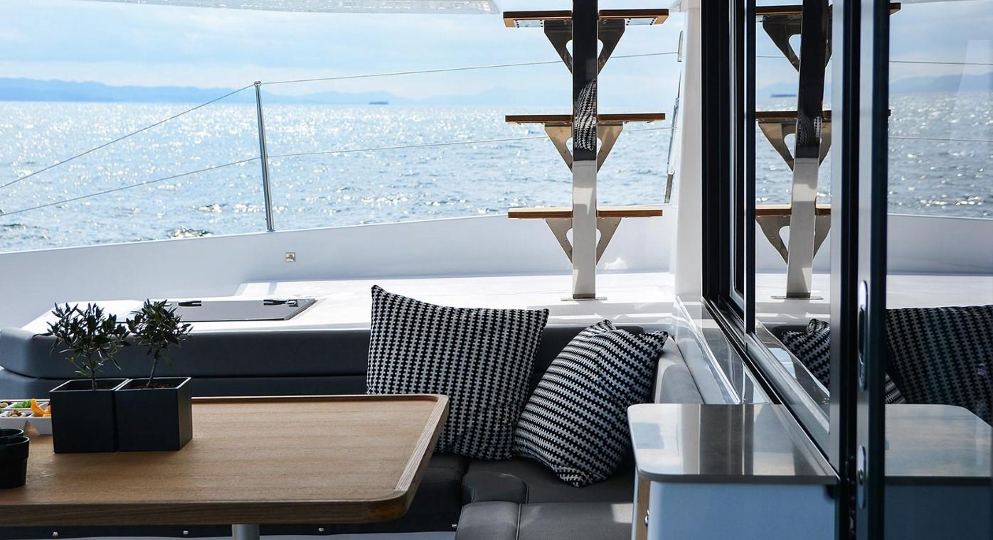 Bienvenue à bord du Dufour 48 de 2023 au départ de Tourlos Marina.