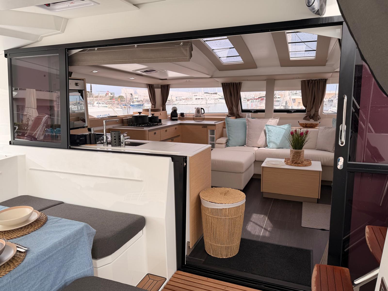 +33 04 94 38 43 01Bienvenue à bord du Fountaine Pajot Elba 45 de 2025 au départ de Capo d'Orlando Marina.