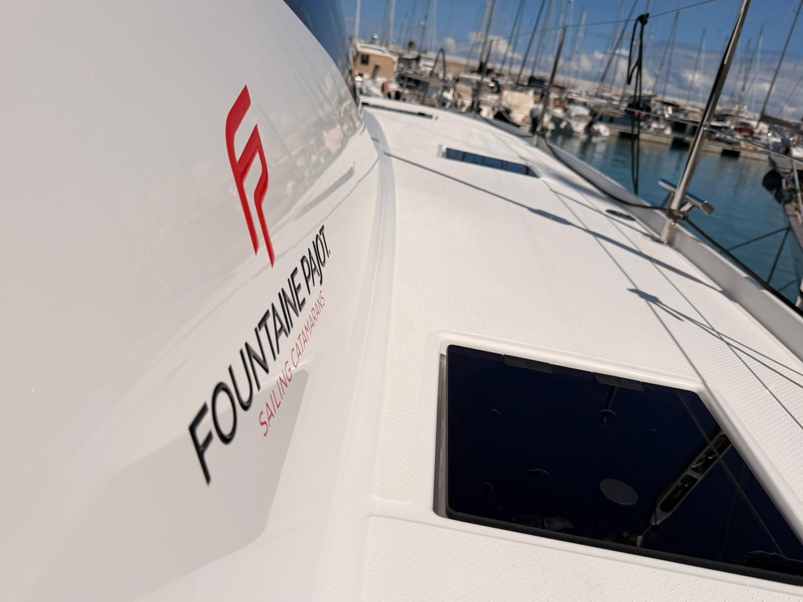 Bienvenue à bord du Fountaine Pajot Elba 45 de 2025 au départ de Capo d'Orlando Marina.