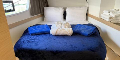 Ce Fountaine Pajot Elba 45 est disponible à la location au départ de Nanny Cay. Il s'agit d'une version 4 cabines, idéal pour vos vacances.
