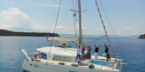 Bienvenue à bord du Lagoon 400 de 2012 au départ de Ormos Panagias.