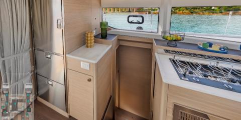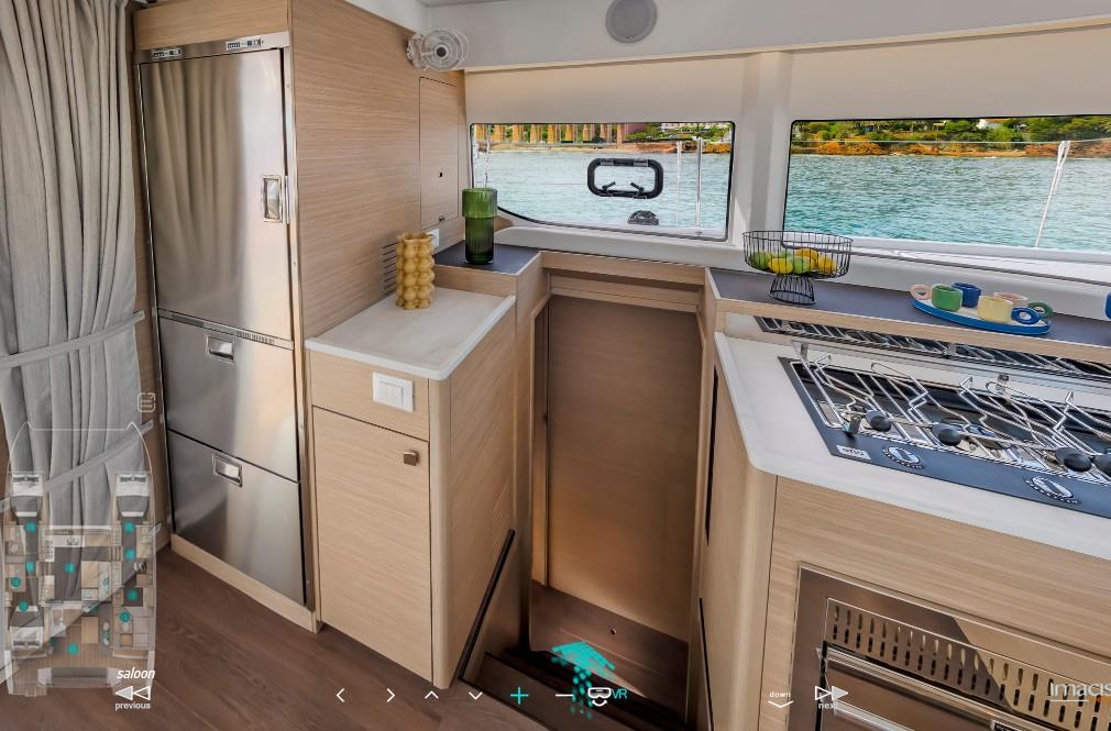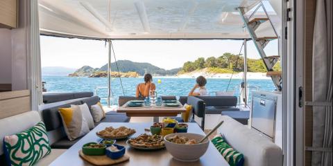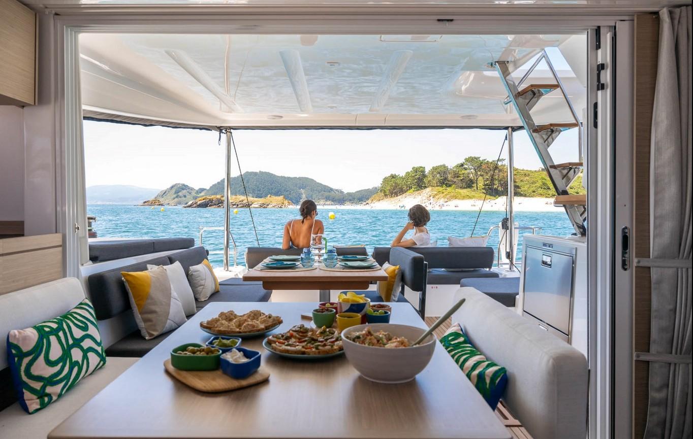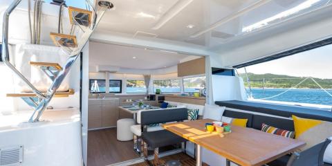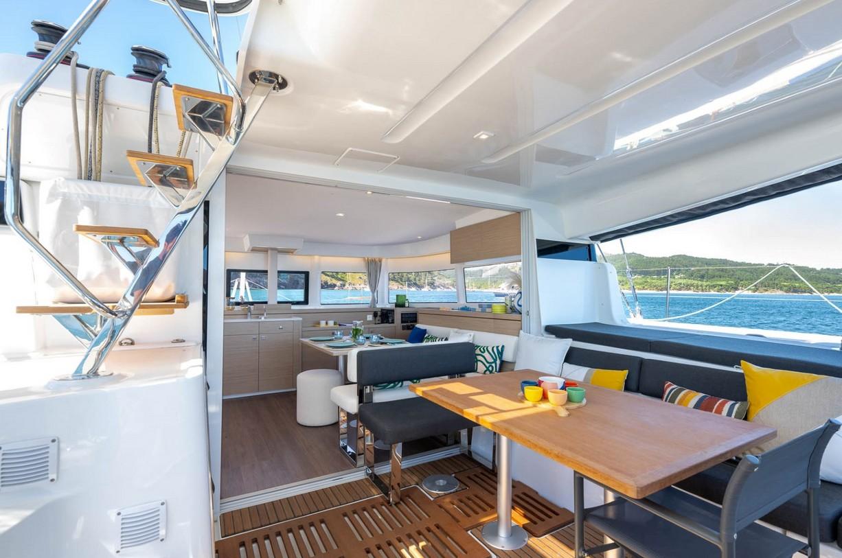 Ce Lagoon 43 est disponible à la location au départ de Marina d'Arechi. Il s'agit d'une version 4 cabines, idéal pour vos vacances.