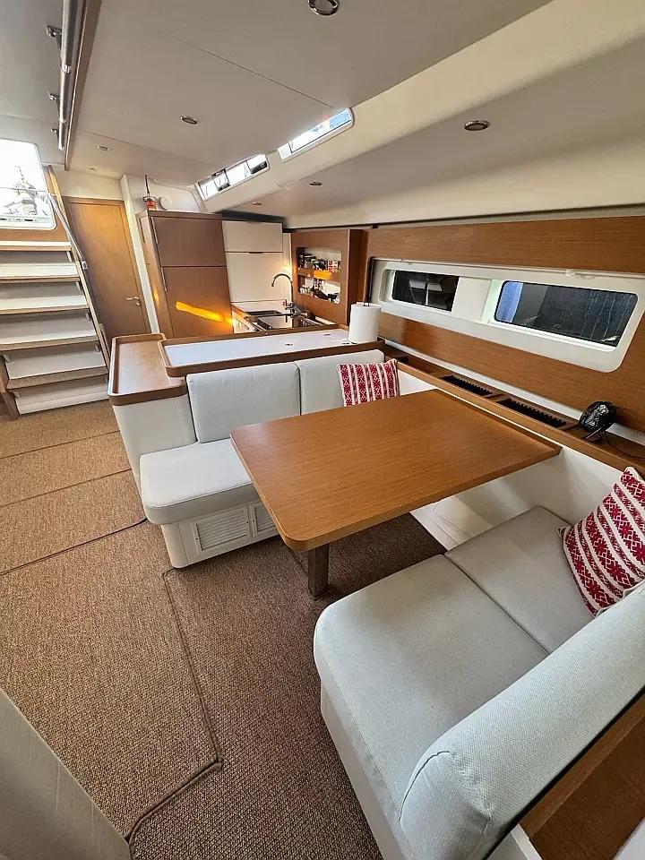 Ce Beneteau First 53 est disponible à la location au départ de Olympic Marina. Il s'agit d'une version 3 cabines, idéal pour vos vacances.