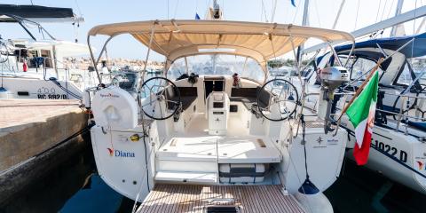 Ce Jeanneau Sun Odyssey 440 est disponible à la location au départ de Marina Portorosa. Il s'agit d'une version 4 cabines, idéal pour vos vacances.